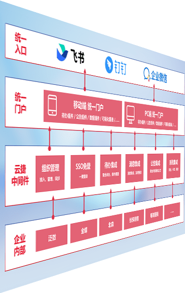 对协作平台提供支持服务,,支持企业应用与协作平台对接,,,包含组织同步、、消息集成、、、待办集成等。。支持目前主流的协作平台:钉钉、、、、企微和飞书。。。